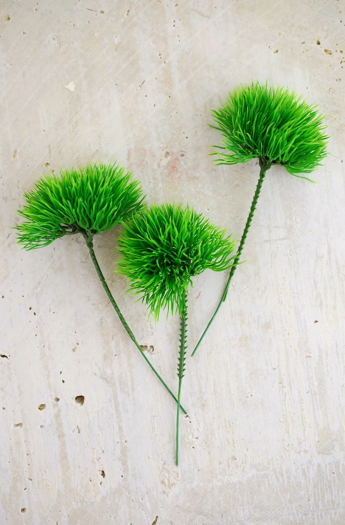 A very different type of carnation with a nice flower head and a delicate stem. Accent bouquets, woodland arrangements, and lush green centerpieces with this Green Trick Dianthus Pick. With the appearance of a grassy or moss-like tuft, Green Trick is a flower (also known as dianthus) belonging to the carnation family. The green flower has a fuzzy pom pom shaped bloom. These Green Trick flowers come in a pack of 36 and will add springy texture and realistic color to your displays. Each pick measures 6″ tall with the grass head measuring about 2″ wide.