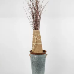 This is a bundle of five natural willow branches that are 39″ tall. They have 50 warm white LEDs and are battery powered (3 x AA batteries/not included) There is a three-way switch where you can chose off, on, and timer (6 hours on, 18 hours off.)