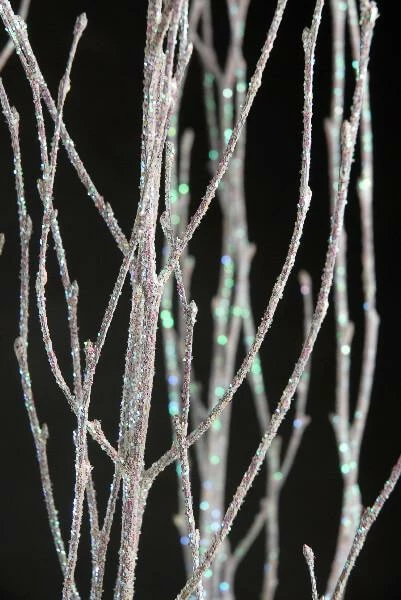 Add some shimmer to your event or home with these Natural Birch Tree Branch Bundle White Sparkle Iridescent. The narrow natural birch branches are covered in iridescent glitter that electrifies any setting. Add these branches to existing arrangements for a bit of twinkle; or place the bundle in a long slender vase on their own for a simple display of glisten. A great choice for weddings, holiday décor, and parties!