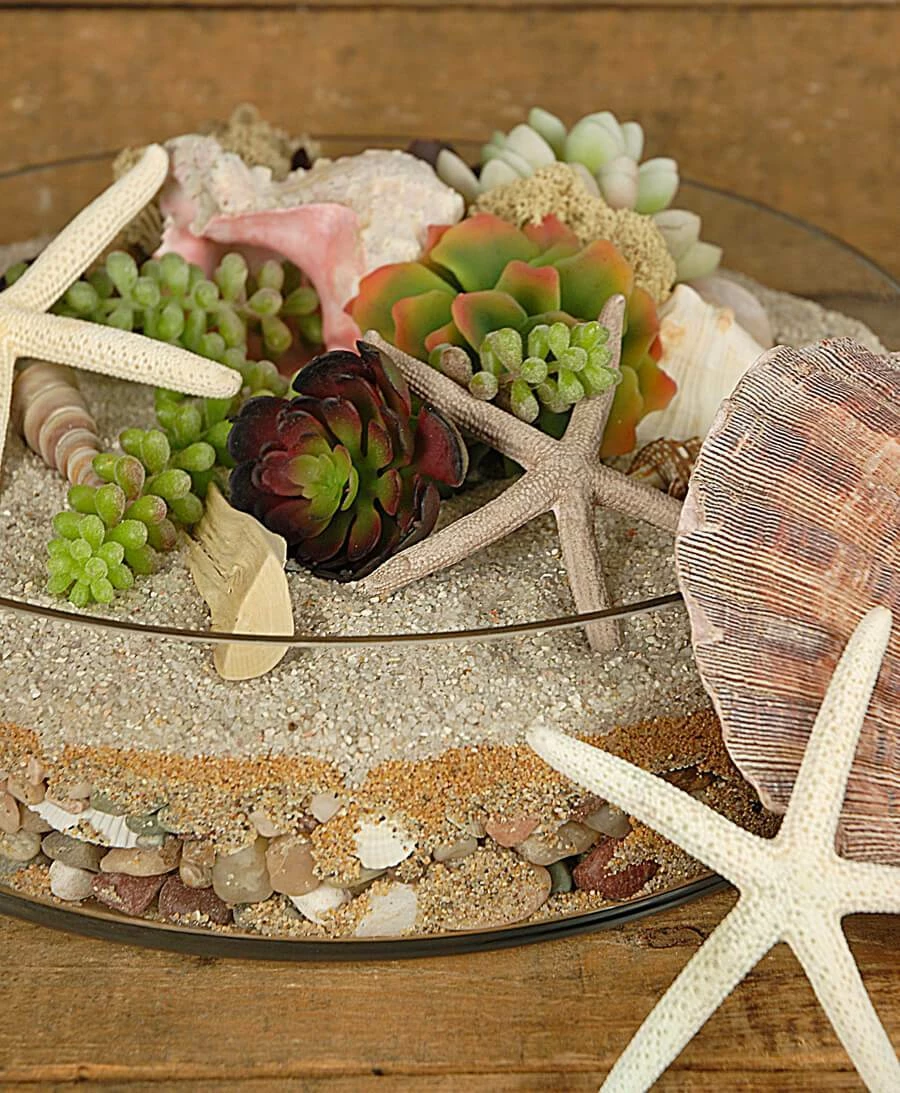 This shallow glass dish makes an excellent container for your beach or woodland themed terrariums! Fill the thick glass Clear Glass Round Terrarium Dish 12″ with sand, shells, and succulents for a light and breezy look. Use layers of dirt, rocks, and moss for a lush, pastoral scene. Place glass gems in the bottom, fill with water, and add floating candles for a luminous display.Â