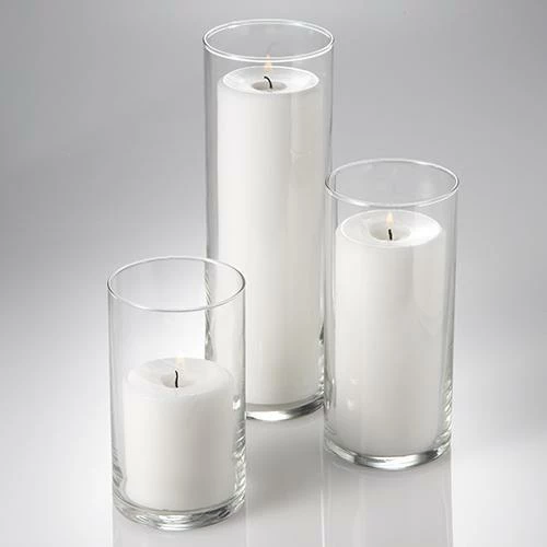 Our elegant, crystal clear Eastland Cylinder Vases make a beautiful presentation in any home or event space. With their simplicity and crystal clear quality glass, these hand-blown vases are a great way to display the twinkling light of pillar candles. With three sizes that add levels and dimension to your table, this set is perfect for any occasion or setting. Set includes 3 total vases – 1 of each size.Â