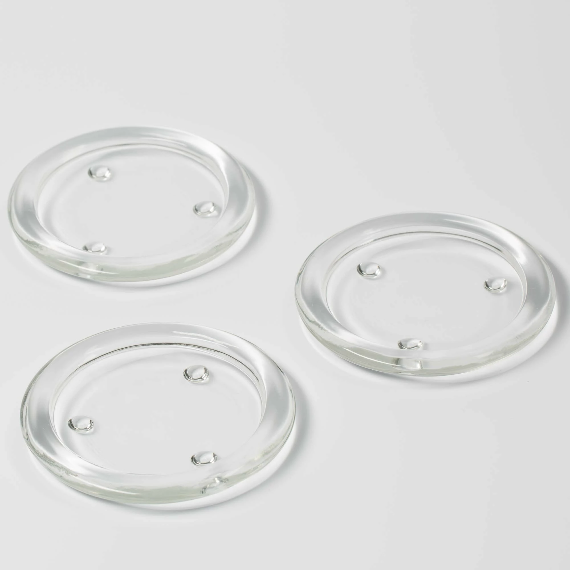 Dimensions: 3″ inner pillar base, 4″ total width. Each plate is made with a raised outer rim and glass feet that provide slight elevation.