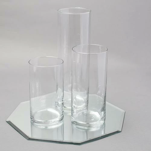 With this fabulous set of 3 Cylinder Vases and 1 Mirror, your table centerpiece is ready-to-go! Simply add florals, RichlandĀ® Pillar or Floating Candles, or other items of your choice to create your perfect theme. The thick, hand-blown, quality clear glass vases perfectly sit atop the beautifully reflective mirror to achieve a look that you and your guests will love. It’s never been easier to create your AMAZING!Ā
