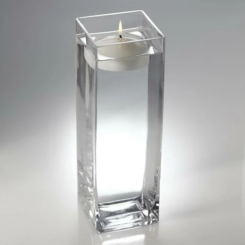 This ready-to-use set of 6 total Square Floating Candle Holders makes a dramatic presentation at any event! The elegant, high quality clear glass, and modern angles make these vases an easy addition to any setting. Simple and classic, whether used for an event space or your home, square vases can be used time and time again!