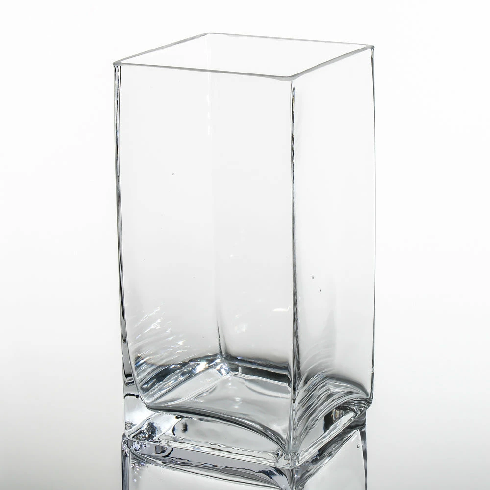 Our square vases are beautiful hand blown pieces of glass. Since each vase is made by hand some small variations and bubbles within the glass are common and make each vase unique.