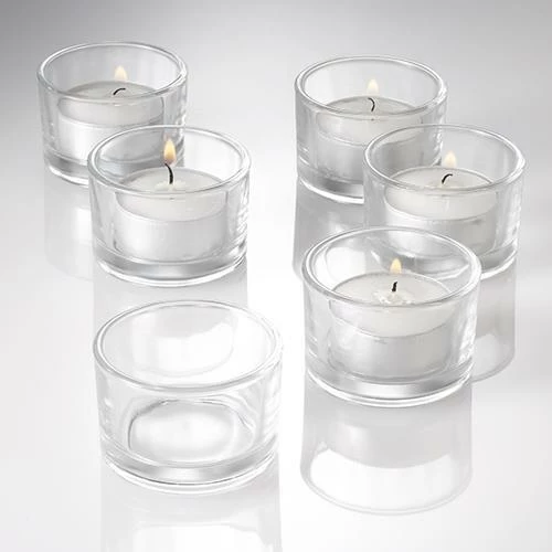 Tealight Candles are an economical way to provide soft lighting to any situation. To maximize safety and burn time, or to change the lighting effect, a Glass Tealight Holder is needed. Quick Candles recommends using our lovely Eastland Tealight Candle Holders to achieve the best results. Our Clear Glass Tealight Candle Holder is great for restaurants, promotional events, parties, receptions, weddings, and home décor. With its sturdy clear glass and elegant, classic shape these holders are perfect in any setting. Set includes (72) holders.Â