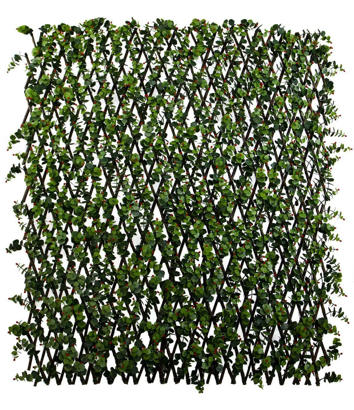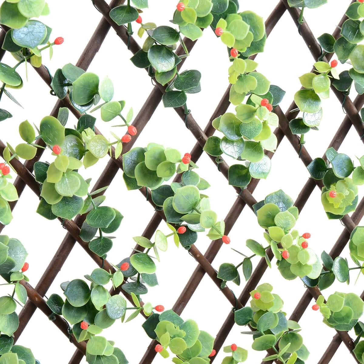 This Expandable Trellis features lush, artificial ilex leaves dotted with red berries. The lattice is made of natural willow and effortlessly expands or contracts to fit any space up to 8.5® long. Use the lattice at a wedding reception or ceremony, or use it to decorate the wall of a home office. The greenery is UV stable and will withstand up to five years of full sun. This trellis also comes in two other styles: boxwood, and ilex leaves with yellow berries.