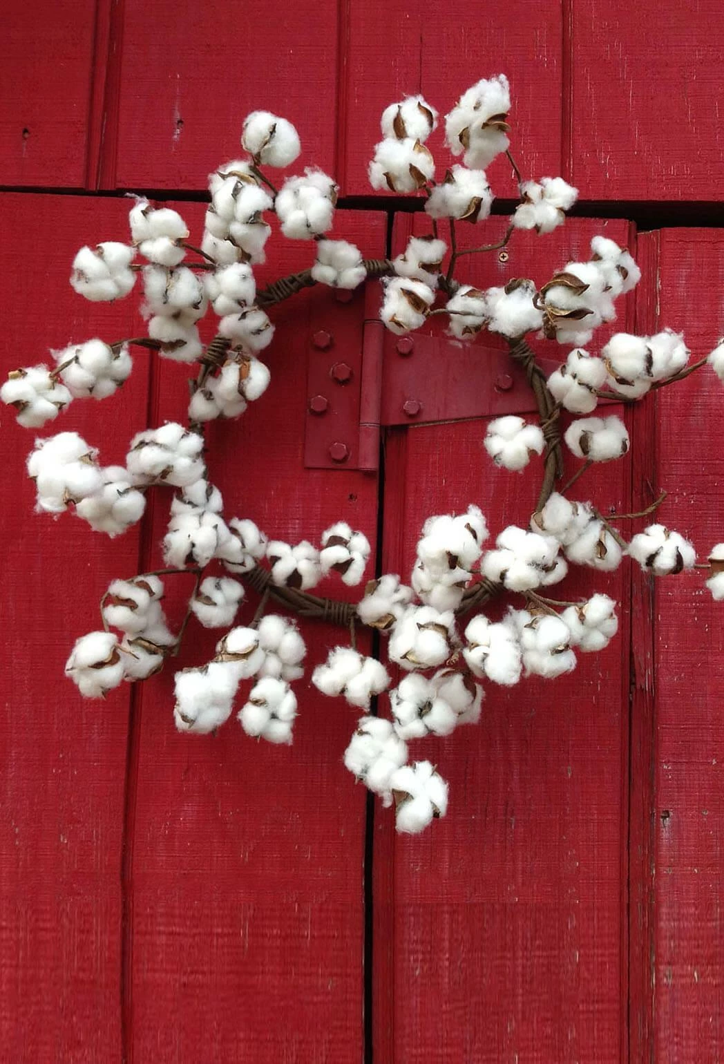 Cotton décor is a hot trend right now; and this wreath is the ultimate accessory! Display a subtle rustic accent with this Faux Cotton Boll Wreath. The stems and leaves are natural and the cotton bolls are artificial. The dark brown bolls full of fluffy white faux cotton adorn each flexible stem of this shabby chic wreath. Perfect for a countryside wedding reception or to complete the autumn display on your front porch.Â