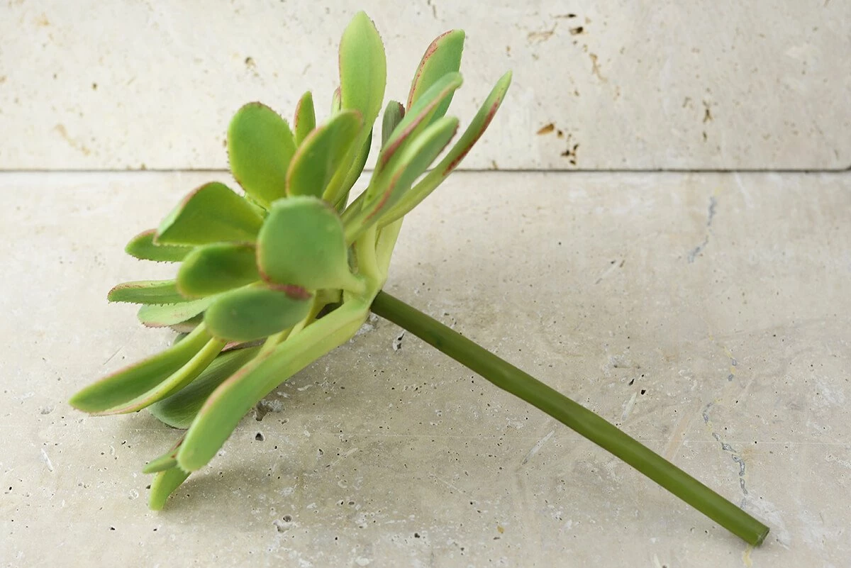 This large, beautiful Bright Green Succulent Stem 9″ Natural Touch will instantly improve the aesthetic of any setting. The highly quality faux succulent is natural touch; and is both realistic-looking and feeling. The piece features bright green coloring and detail with just a touch of burgundy on the tips. This floral pick is 11″ tall on a wired stem and the succulent head measures 9″ wide.Â