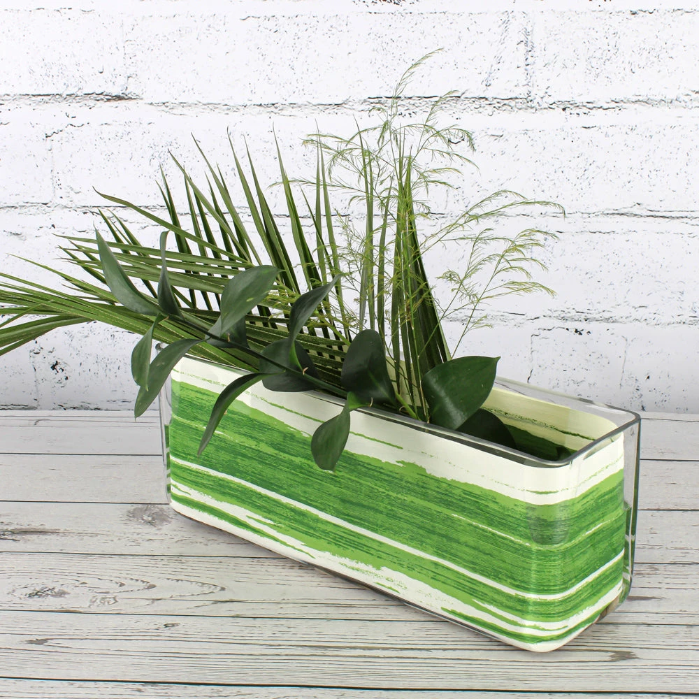 This Long Rectangular Vase’s soft corners and ice-like glass elegance make it wonderful for displaying floating candles or flowers; layered sand and stone; or fresh floral arrangements – accented with moss or decorative gems. Use this sturdy clear glass basin to organize a dazzling terrarium of small plants and succulents.