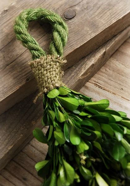 Give your event a lush green touch with this Natural Preserved Boxwood Garland! Perfect for draping or wrapping around pillars, altars, and tables. This garland is made of natural boxwood that has been preserved and then woven into rope. This piece will add texture and beauty to the décor of your home and event. Features a loop at the end for easy hanging.