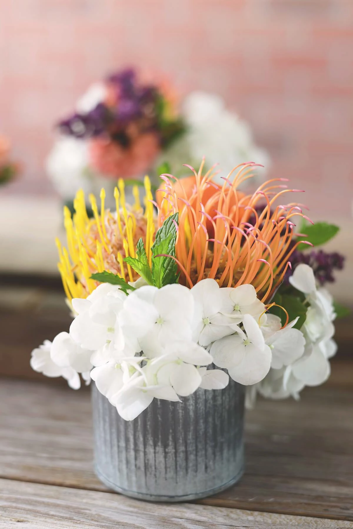 Add some industrial flair to floral beauty with this set of 6 small Norah Corrugated Zinc Vases 3″. These small rustic zinc containers contrast yet shows off the softness of floral arrangements and greenery in a lovely and interesting way that will surely impress your guests. The petite cylindrical vessels have a rustic finish and are made of corrugated metal material. Perfect to accent an outdoor event or decorate a modern patio.   The unique patina effect on each item creates an one of a kind beauty to every piece.