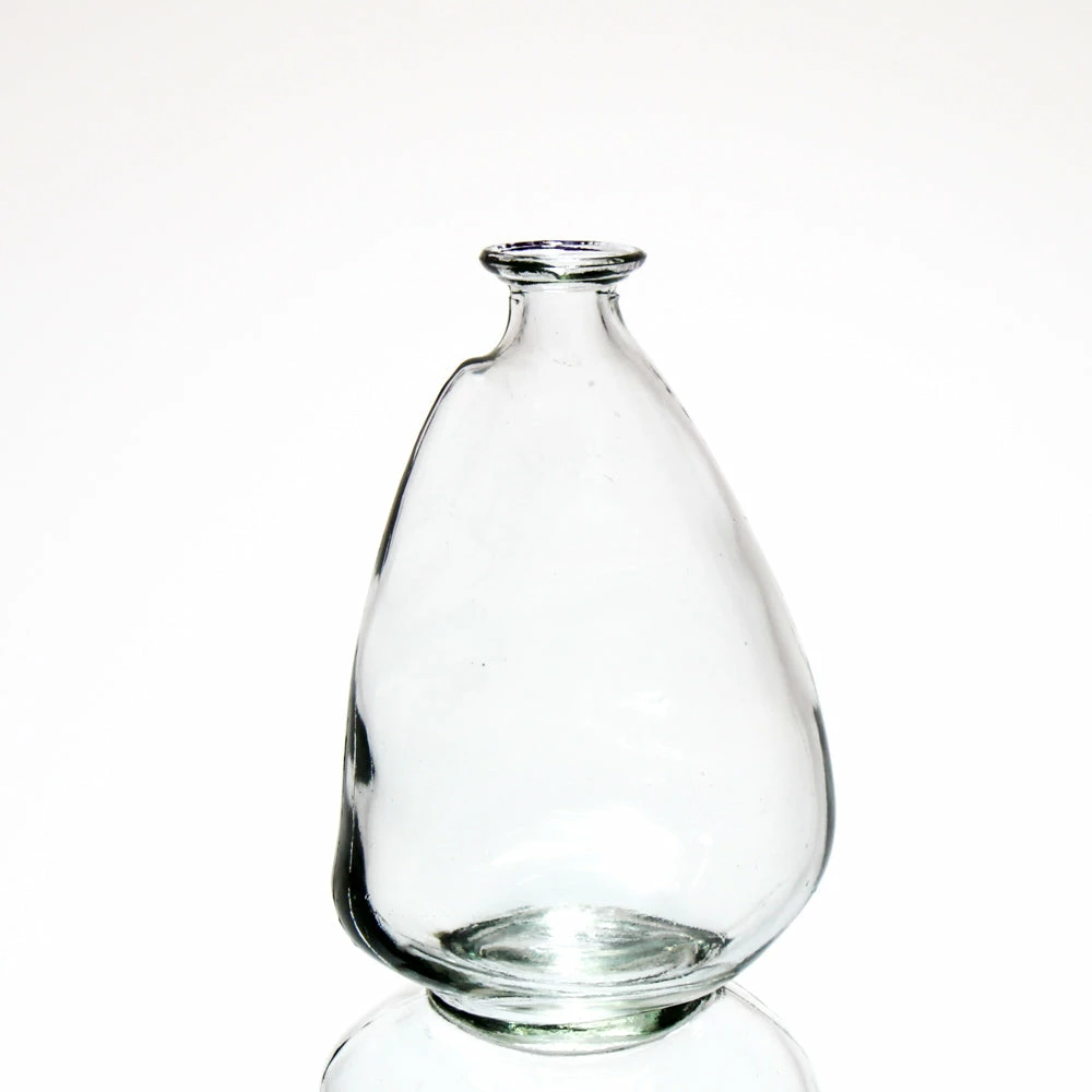 This handblown glass has a tiered effect to the rim of the opening that is sure to bring whimsy to your floral arrangement. This bottle does have visible seams and has an indented bottom for steadiness.
