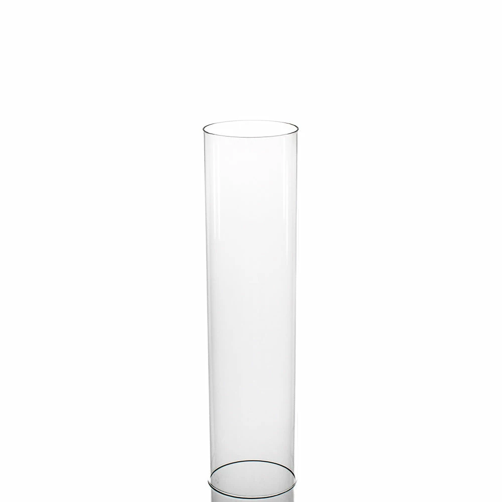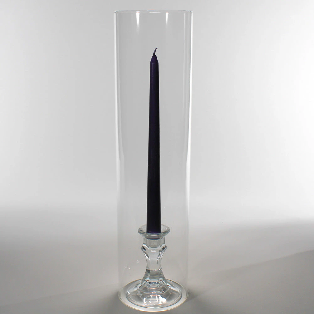 Looking for a way to enclose your candle flame when your event is outside, or have a venue with restrictions? Look no further! This open-ended candle shade can cover a variety of holders so that you can have the elegant look of taper candles without the open flame. This high quality clear glass chimney shade is a cylinder shape but has no bottom – so it can be placed over your candles & holders. For an item to fit within the shade safely, it must be 3.5″ wide or narrower.Â