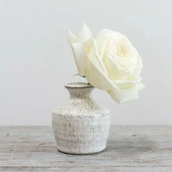 Beckoning the feel of a peaceful mountaintop retreat, this small white glazed ceramic bud vase has a stone-inspired texture that adds a touch of serenity to any setting. The organic feel and elegant shape of this piece makes it perfect for displaying lush blooms, crisp twigs, or a rich succulent. Create inviting centerpieces by using the boho chic Hari Budvase in table centerpieces for an event; or use as an effortless upgrade to your home and office décor.