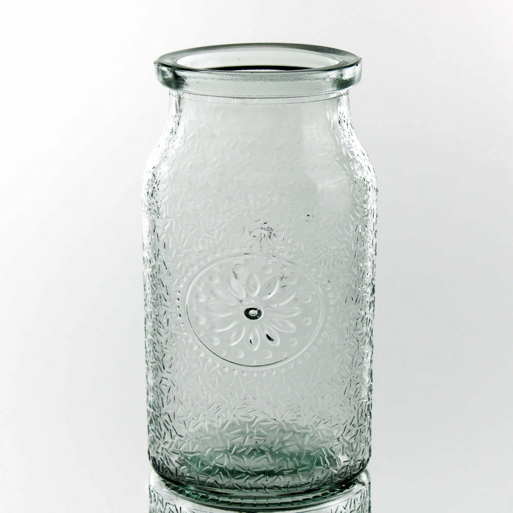 A fresh take on the classic milk jug style, our new Richland Hickory Farmhouse Jar is perfect for adding interest to any setting.Β This vintage-inspired glass jar with raised texture design, tapered neck, and thick rim is the perfect vessel for your favorite fresh flowers.Β Incorporate this charming vase into centerpieces at your special event for a dainty touch; or use as an accent to a bookshelf or office to add gorgeous farmhouse flair. Perfect for weddings, showers, garden parties, or home dΓ©cor!