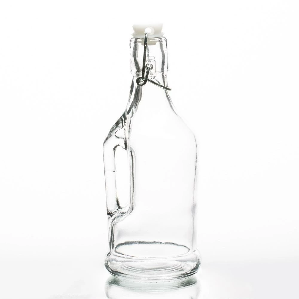 A great vintage style glass jar! We love the thick glass, the simple handle, and the cool secured topper latch. Using this in décor for flowers or greenery sprigs, or just as-is or for a vintage touch in a centerpiece, this glass jar is sure to please. Pair with the smaller size to mix and match and complete your look! This jar holds approximately 13 ounces.