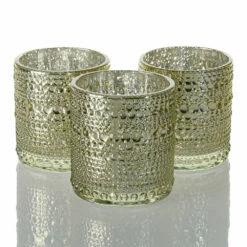 Perfection! This metallic gold holder is full of gorgeous pearl size rounds in multiple sizes to create the most magical and stunning effect. With candlelight added, a lovely shimmery glow is created from the inside out through the dappled mercury interior. Incorporate a few around table centerpieces, line cocktail bars, or place on accent tables for instant glamour. This thick glass piece is perfect for weddings, special events, restaurants, and home décor!Â