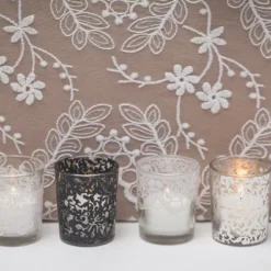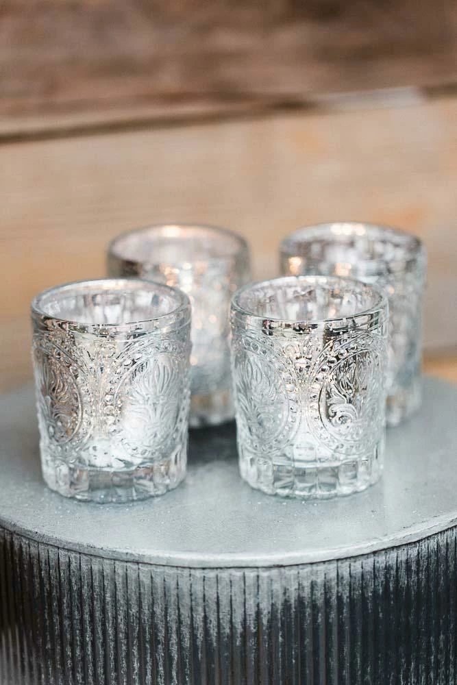 The most lovely combination of mercury style, premium glass, shining silver, and intricate design make our Primrose Mercury Votive Holder a must-have! This glass holder has a thick sham and raised textured body with four design-filled circles – this adds to the intrigue of the design and catches the glimmer of candlelight. Fill with our Richland Votive or Tealight candles; and the effect of glowing light is stunning through the speckled interior.