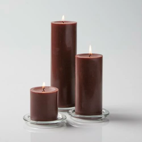 • (4 of each) Richland® 3″x3″ / 3″x6″ / 3″x9″ Pillar Candles Brown