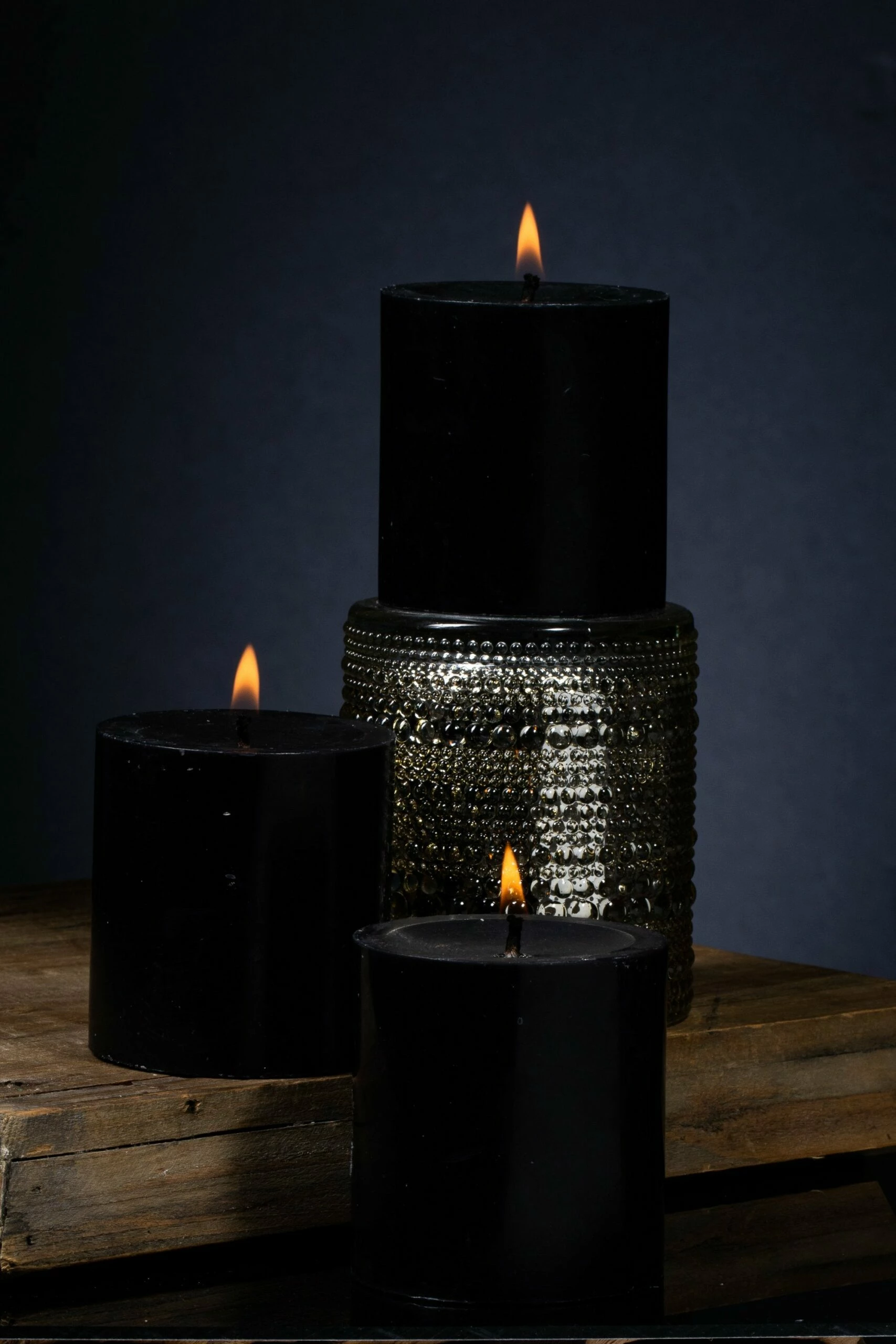 • (12) Richland® 3″x3″ Pillar Candles Black