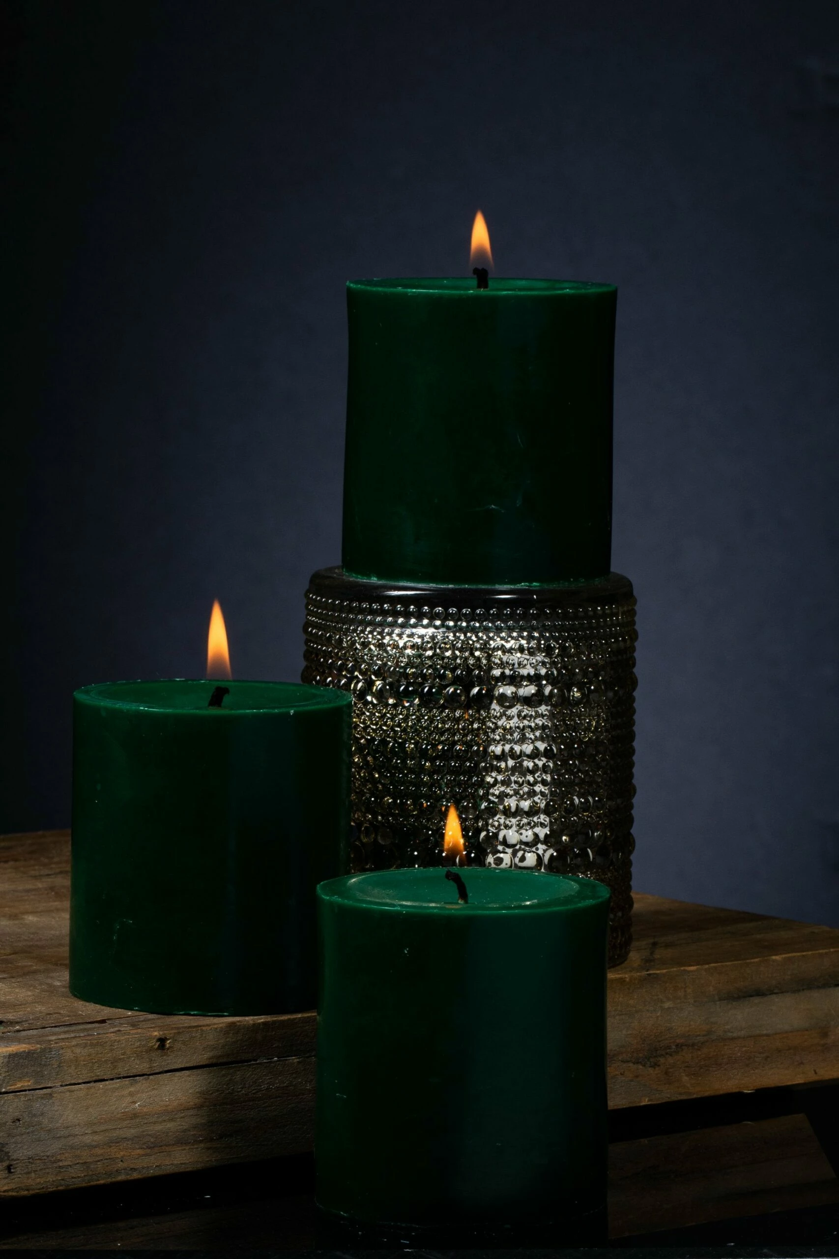 • (12) Richland® 3″x3″ Pillar Candles Dark Green