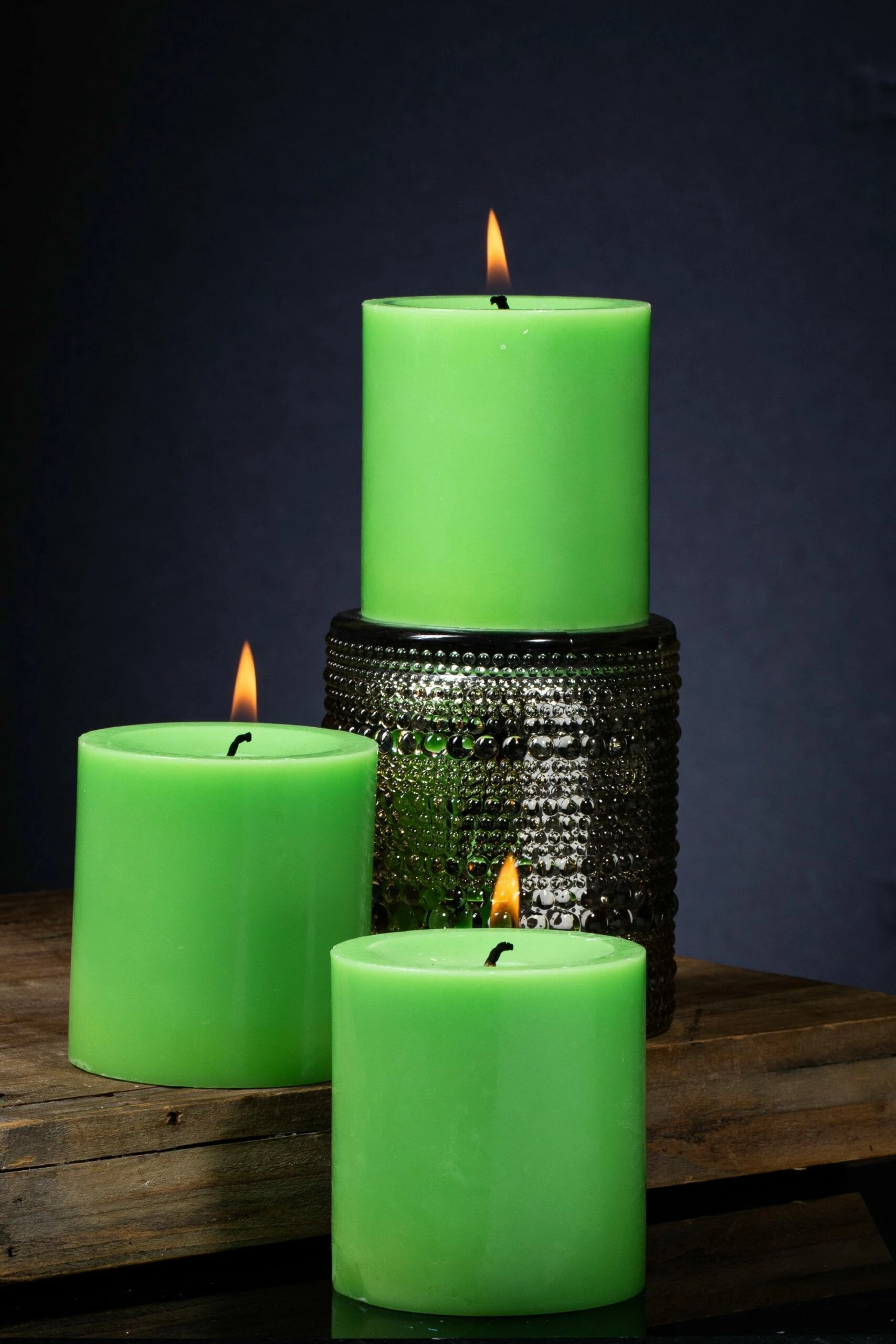 • (12) Richland® 3″x3″ Pillar Candles Green
