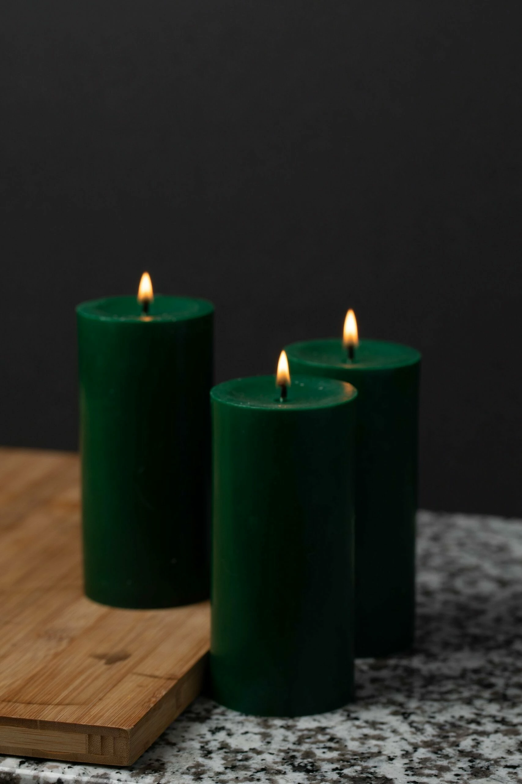 • (12) Richland® 3″x6″ Pillar Candles Dark Green