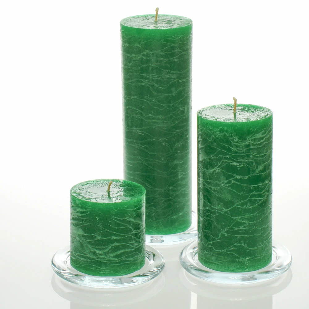 - (1 of each) Richland® 3″x3″ / 3″x6″ / 3″x9″ Rustic Pillar Candles Dark Green