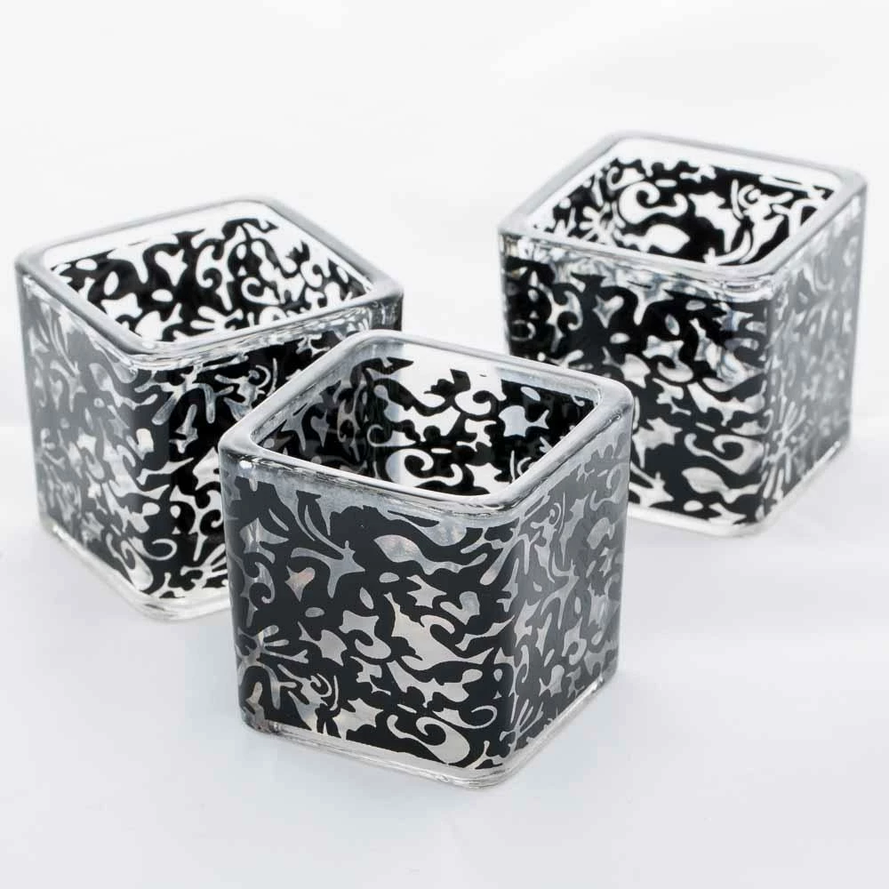 Making an intriguing statement has never been easier! Incorporate this clear glass square votive holder with added black lace pattern decal to any setting for instant sophistication. Add our Richland Votive or Tealight Candles to complete your look. Candlelight dances about through the lace design to create a special ambiance that is well-suited for restaurants, weddings, special events, and home décor!Â
