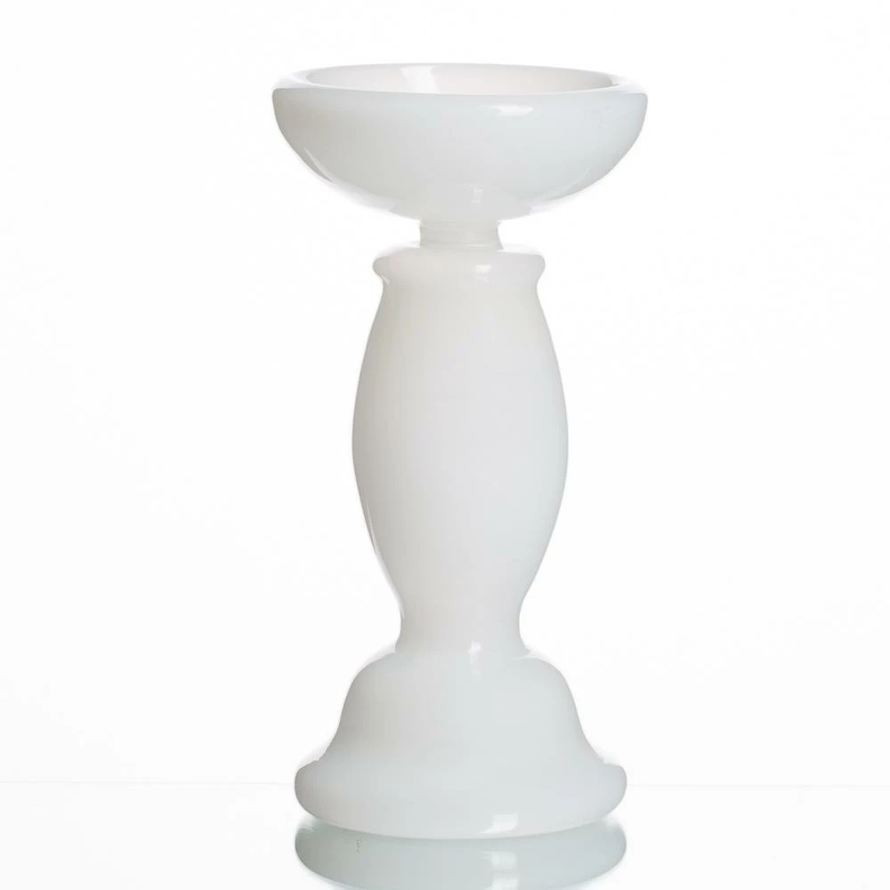 Can you say gorgeous? These delicate, white glass pillar candle holders are so stunning. Both sophisticated with a touch of modern, these pillar candle holders can be added to your home or event with ease. Adding pillar candles atop the holders will provide the perfect elevated glow. This tiered set of 3 holders is the perfect centerpiece; or you may use each size individually as accent pieces.