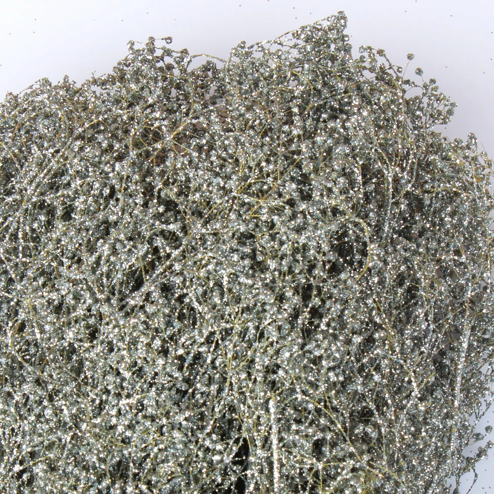 Spruce up your centerpieces and bouquets with this sparkling, powdery golden bundle of Preserved Baby’s Breath. The Gold Baby’s Breath brings dazzling texture to your floral arrangements or centerpieces. Add a few sprigs for instant glistening to any setting.Â