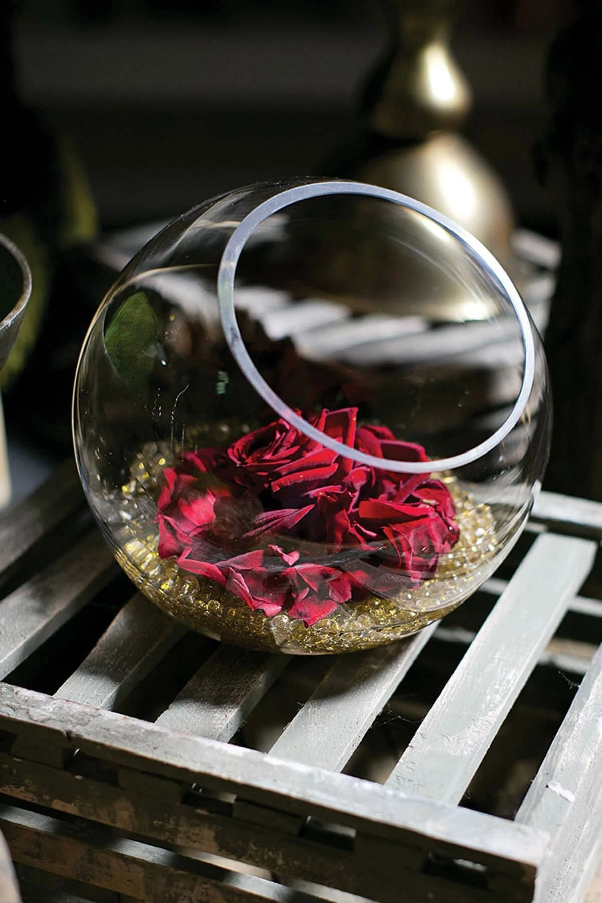 Create a stunning galleria of succulents or air plants with this Studio Glass Sphere Bowl! This large and fabulous clear glass orb makes it easy to create a gorgeous display or show stopping centerpiece. This piece features thick glass and a wide mouth opening for easy placement of whatever you choose to place inside.