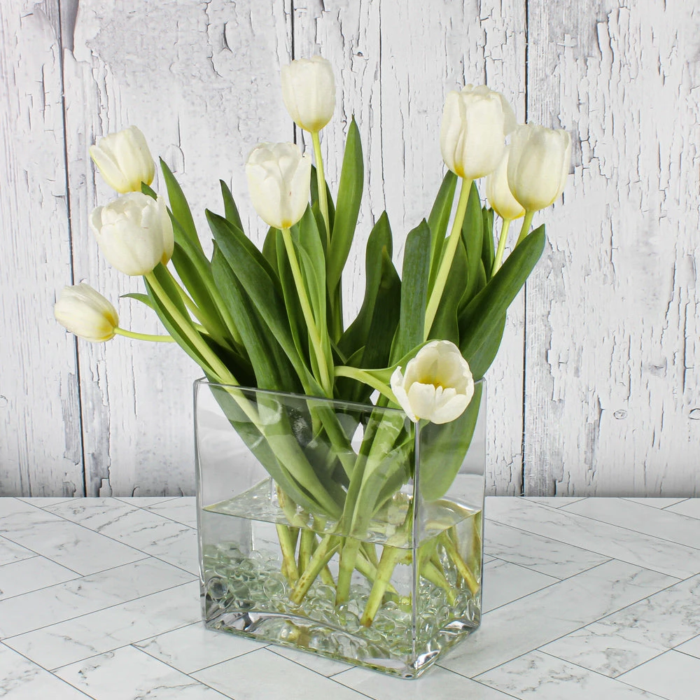 The ice-like elegance of this sturdy, heavy, thick glass vase makes it wonderful for modern décor and settings. Use this rectangular shaped vase with square face to display floating candles or flower arrangements; layered sand and stone; or as a terrarium with moss and succulents. Great to create special event centerpieces or as a statement piece in your home.